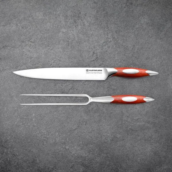 The 9” Carving Knife & Fork is presented in a beautiful wood presentation case. Slightly longer than most carving blades, the 9” Carving Knife will ensure easy and thin slices when preparing meals of poultry, ham, roasts, as well as larger game. Its razor-sharp point makes it ideal for both boned and boneless joints. And the thinner blade allows for precision and maneuverability to achieve that perfect cut as you plate dinner.