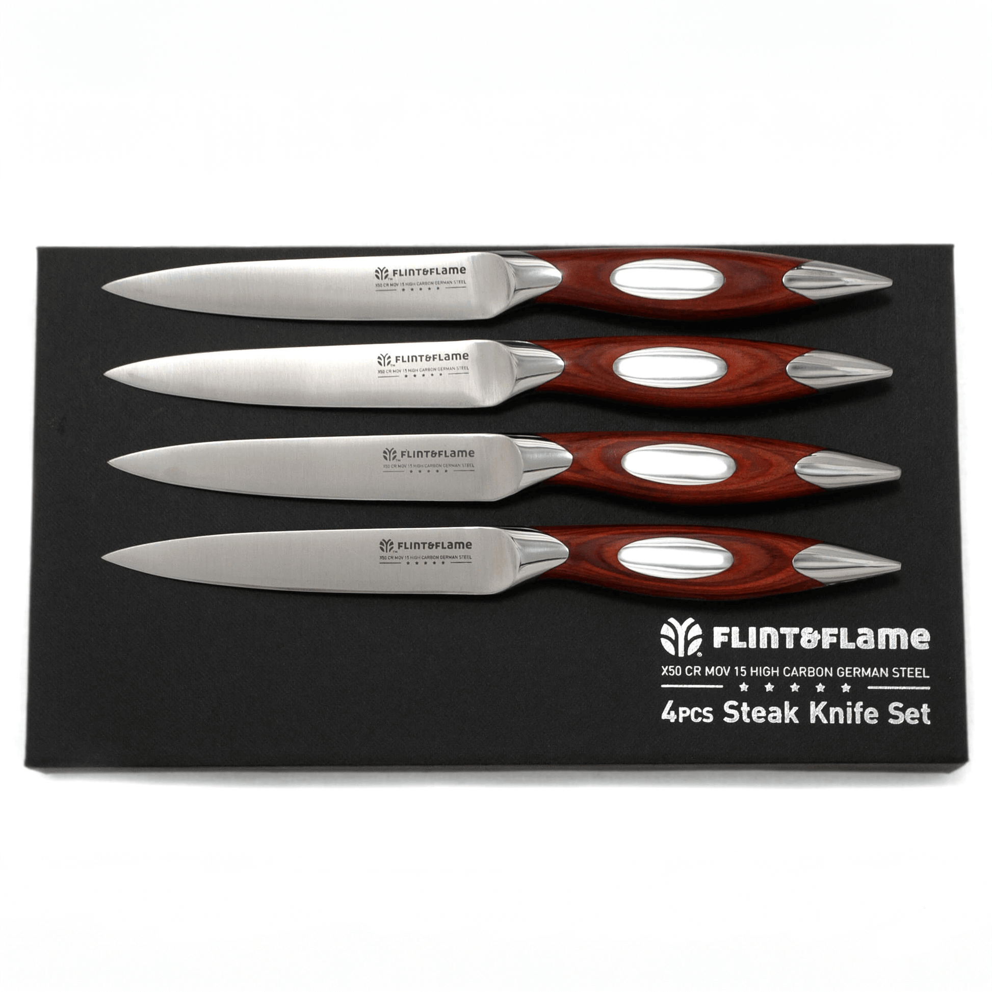 A set of 4 exquisite Steak/Dining Knives. Presented in our branded black card box perfect for that family gathering.